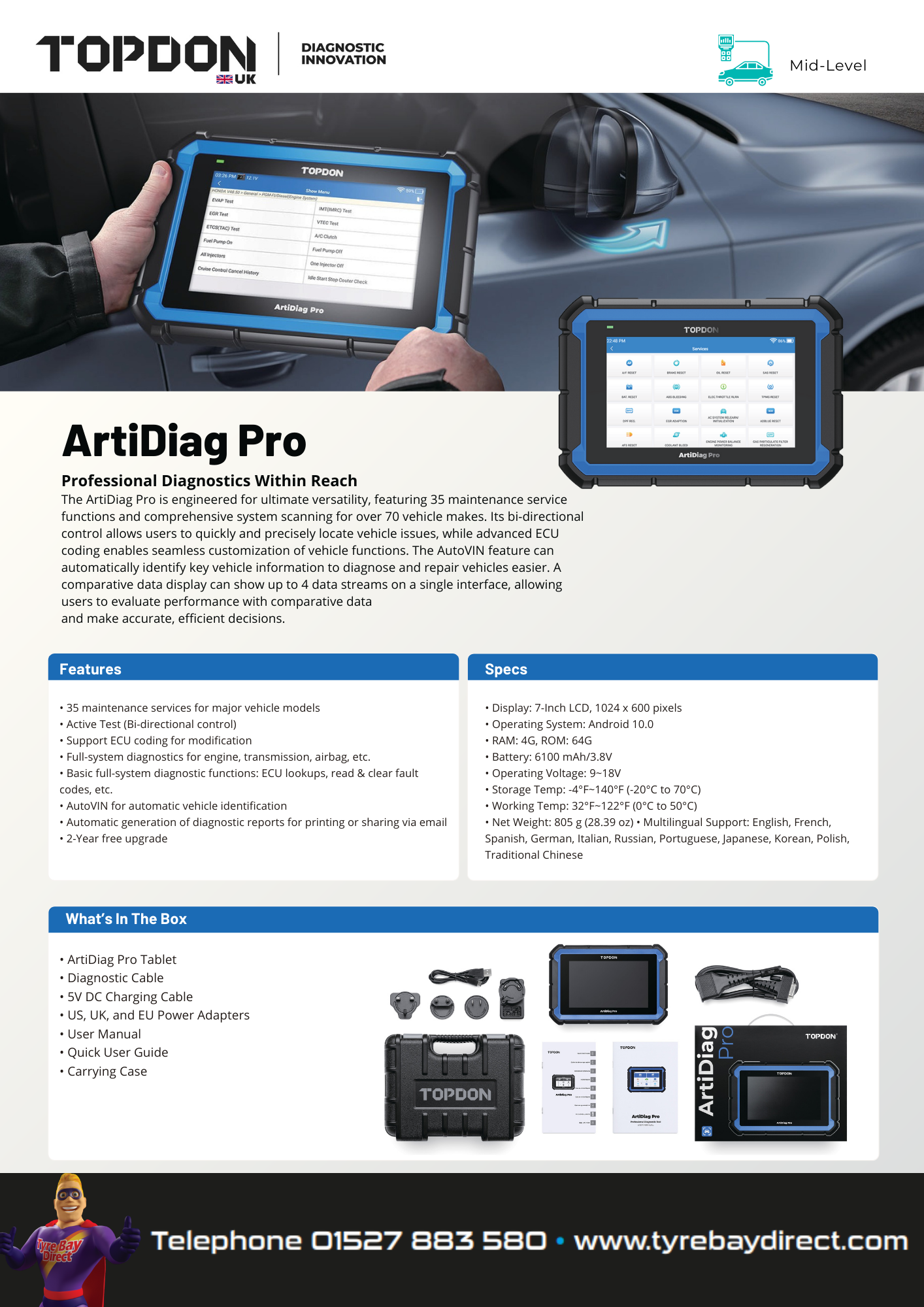 Upgrade your diagnostic capabilities with the TOPDON ArtiDiag Pro, now in stock at Tyre Bay Direct.